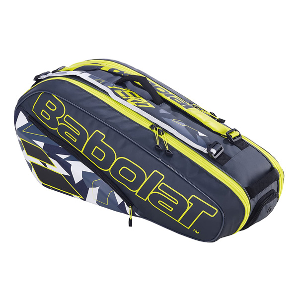 | RH6 Pure Aero (ラケットホルダー 6 ピュア アエロ) は、その斬新なデザインと充実した機能が特徴のバッグです。メインコンパートメントには最大4本のラケットと、その他テニス用品を収納できます。2本用のコンパートメントは、急激な温度変化からストリングを保護するために断熱材が使用されています。